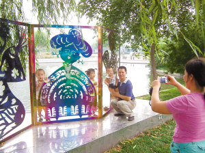 盛夏的泰丰公园,睡莲怒放、杨柳依依。湖畔,公园新设置的一组仿剪纸镂空造型雕塑,“中国风”韵味十足,游人争相拍照。