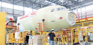 18日,首架空客A320飞机在空客天津总装厂房开始组装。