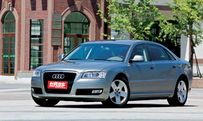 坐入驾驶室,借助座椅的电动调节功能,笔者很快调整好了座椅的位置而且感受到了座椅良好的支撑性。后视镜的调节也很方便,开车前的准备工作在数秒钟之内轻松完成。带胡桃木装饰的4辐真皮转向盘很有质感。踩下制动踏板,轻轻按压发动机启动按钮,在各装备出现数据显示时确认发动机已经启动,在驾驶室笔者几乎听不到发动机的声音,奥迪A8L的隔音效果非常出色。装配的2.8L V6汽油发动机最大输出功率154kW,最大输出转矩280N?m,这使得A8L的最高车速能够达到245km/h。起步加速时,A8L动力输出比较顺畅,当速度达到140km/h时,车辆行驶相当平稳、顺畅,这主要得益于奥迪A8L宽大的车身和经过调校的底盘。当速度达到180km/h时,可以听到一些风噪和胎噪,但如果打开音响,能听到的只有纯粹的乐曲,此时车辆的行驶依然非常平稳。A8L使用了可调空气悬架,共有4种模式,分别是高位、舒适、自动和低位。当通过凸凹不平的路面时,选择高位悬架,可以明显感觉到底盘升高的过程,先是后部升起然后是前部升起,这样可以保证车辆轻松通过崎岖路面;在舒适模式下可以感觉到悬架变得偏软;而在自动模式下,车辆通过ECU处理传感器收集到的信号,自动为车辆选择最佳的悬架状态,从而提供了最佳的驾乘感受;低位的空气悬架是一种悬架比较硬的状态,它可以将路面状况精确地传递给驾驶者,提升操控性。奥迪设在转向盘上的换挡拨片,极大地提高了驾驶乐趣,使车辆的反应更加灵活。如果将挡杆推入S挡,那么你将开始一段运动之旅。虽然是加长版的车身,但笔者驾驶这个大家伙穿梭于车流之中仍然很灵活。A8L搭载的是一款无级变速器,为了提升驾驶乐趣,该变速器还设定了7个挡位模式。在这款车中,奥迪A8L另一个显著特点就是大胆采用了前驱设计。众所周知,前驱车的一个缺点就是转向不足,但奥迪知难而上,并且一举克服了前驱车共有的缺点,因为驾驶它转向时根本感觉不到转向不足,这让我们不得不佩服奥迪在汽车制造技术中的自信和非凡实力。