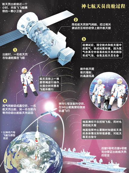 神七航天员出舱过程示意图