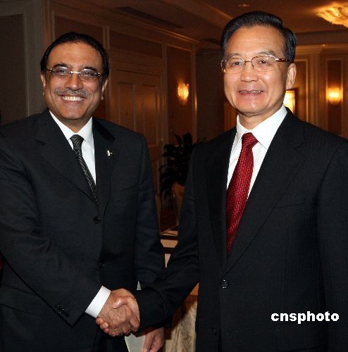 资料图:9月24日晚,中国总理温家宝曾在纽约会见巴基斯坦新总统扎尔达里。