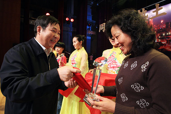 北方网消息(摄影 马成):昨天,八一礼堂内激情澎湃、歌声如潮,由市委宣传部、市文明办、市文化局共同主办的“同在一方热土,共建美好家园”歌曲传唱展演活动在这里隆重举行。市委常委、市委宣传部部长、市文明委常务副主任肖怀远与有关单位负责同志一起为“同在一方热土,共建美好家园”歌曲传唱活动中的优秀演唱团队颁奖,并同全市各界干部群众代表一起欣赏了精彩的展示演出。