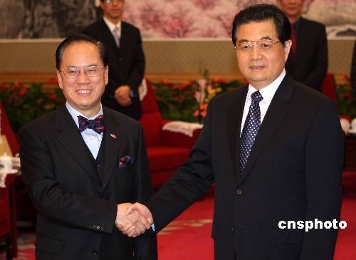 | 12月19日下午,国家主席胡锦涛在北京中南海会见前来述职的香港特别行政区行政长官曾荫权 |