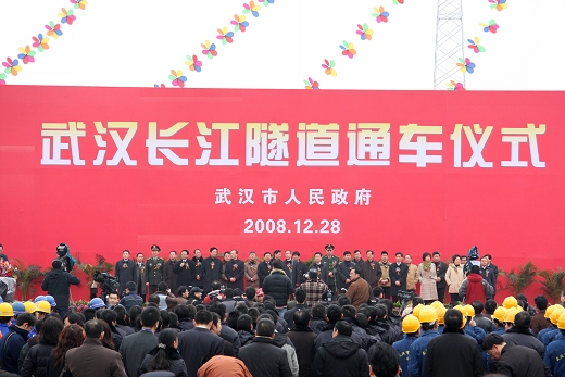 2008年12月28日,武汉长江隧道在武昌隧道主出口处举行通车仪式。中共湖北省委副书记、省长李鸿忠,中共湖北省委副书记、中共武汉市委书记杨松,中共湖北省委常委、常务副省长李宪生,中共武汉市委副书记、市长阮成发,武汉市政协主席叶金生等省市领导出席了通车仪式。