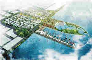 据悉,根据陆地渔港新城规划,渔港西部陆地将建设水产品交易区、冷藏加工区、综合物资区、修船区、油库区、综合管理区和水产集团基地等七大功能区。东部陆地为休闲渔业区,将建设渔民新村、游钓俱乐部、采摘公园、度假村和海洋渔业世博园五大功能区。其中,北端为57万平方米的特色旅游住宿区,全部使用淡化后的海水。南端的两个休闲景观半岛伸入港湾,将建设成为特色海韵游乐目的地。