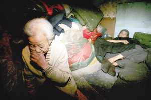 “宝财,你起来看看,有人看你来了。”见到记者进门,吴莲喜老人进屋去叫蒙着被子躺在床上的吴宝财。连续叫了几声,吴宝财都不回应,吴大娘伸手去掀棉被,被子还没掀起来,一只穿着鞋子的脚便朝吴大娘使劲踹过去。“他不愿意了,稍有不顺心,不是踢我就是捶我。”吴大娘说着再次去掀棉被,这一次换来的不是飞脚而是迎头的咒骂声。