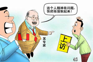 日前,国家卫生部专家委员、北京大学司法鉴定室主任孙东东宣称:“对那些老上访专业户,我负责任地说,不说100%,至少99%以上精神有问题,都是偏执型精神障碍。”“偏执型精神障碍属于需要强制的一类。因为他扰乱社会秩序……”