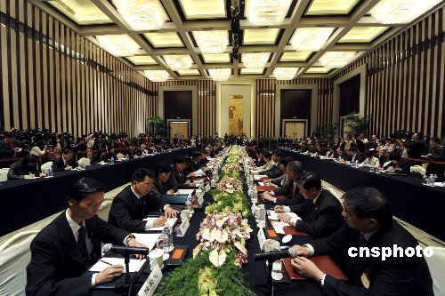 4月26日上午9时许,海协会海基会在南京紫金山庄会议中心紫金厅举行两会第三次会谈。中新社发