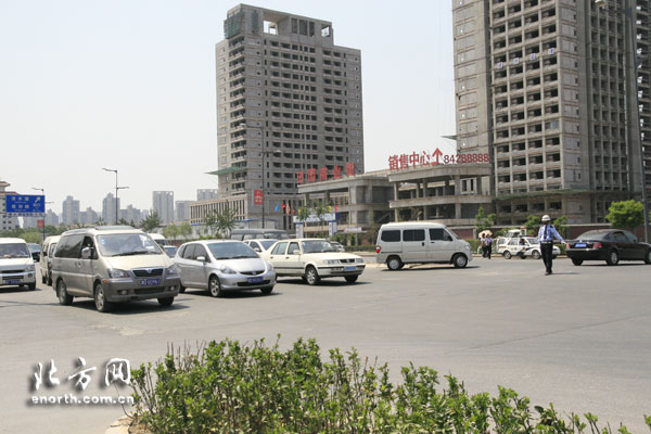 | 解放南路与潭江道交口处交通拥堵,交管局河西支队高峰时段抽调警力维持秩序 |