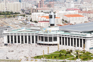 与摩天轮相呼应的是正在建造中的津塔。这座号称“华北地区最高建筑物”的摩天大楼设计高度为336.9米,建成后,将以绝对高度矗立在海河之滨,椭圆形的塔身像一张迎风鼓起的帆,带着快速发展的天津,航行在碧蓝色的海河上。