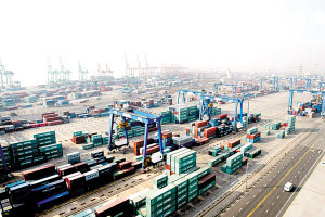 航运纽带连接世界在海河奔流入海处,有一座水陆域面积近200平方公里的现代化大港口,它是中国最大的人工海港和我国对外贸易的重要口岸,航道最大可进出25万吨级的船舶,水深最深达-19.5米,岸线长度18.1公里……这就是天津港。