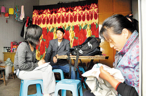 为了多赚些生活费,永兴板房区的很多妇女都在编织丝网花,制作一朵可以得到2元钱报酬。福兰今年28岁,是个有着朴实笑容的北川女孩儿,她一天可以做60朵丝网花,是永兴板房区手最巧的姑娘。福兰的板房里经常围绕着很多姐妹,和她学编织,做活儿时的福兰很认真,常常一坐下就是几个小时,按照福兰的话说,多做些事情,就不会想太多以前的事情。