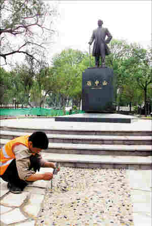 今天上午,中山公园升级改造工程园内景点已基本建成。本着“恢复历史原貌,提升与保护并举”的原则,改造中保留连廊、飞檐、四柱牌坊等中国元素,重点建设孙中山雕塑、魏士毅女士纪念碑、天津十七烈士纪念碑等共同构成的爱国主义教育区,下沉式中心广场区,欧式风情区和以介绍孙中山先生生平为重点的公园展览馆区等4个景区。改造后的中山公园将成为新型的街心公园,预计本月底完工并免费向市民开放。