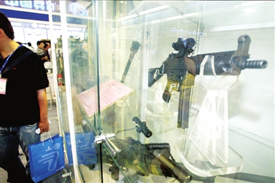 展会上,来自重庆的一家公司推出了9mm警用冲锋枪。据厂家介绍,这种枪大量使用了合金钢和复合材料,枪身重量不过2.1公斤。经过特别设计,这种冲锋枪除了可以使用普通子弹射击外,还可以发射杀伤力较小的橡皮子弹,特别适合在人口密集的城市内使用。