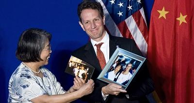 接受礼物时,盖特纳刚刚结束了他在北京大学题为《美国与中国,为经济复苏与增长加强合作》的演讲。“中国和美国对于全球经济和金融系统的稳定与发展都显得至关重要。”他用中文呼吁双方要“同心协力”,在彼此经济的健康发展中分享共同利益。