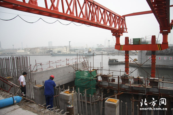 | 海河开启桥已经进入关键部位的安装阶段 |