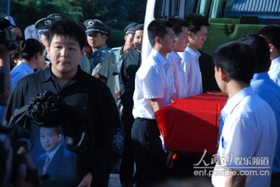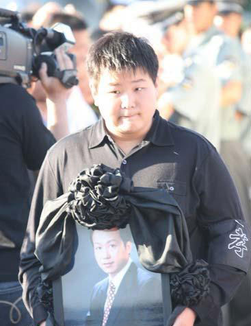 | 抱遗像缓步走向灵堂 |
