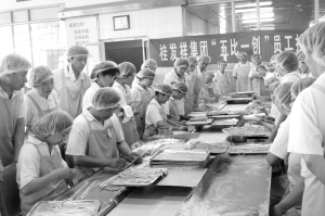 据了解,为确保竞赛取得实效,区总工会通过“抓启动抓培训抓活动抓典型抓实效”来指导各单位开展竞赛活动。在抓启动方面,全区在第一时间召开了推动会,各重点参赛单位结合自身特点启动了劳动竞赛。在竞赛启动仪式上,盛泰物业公司各部门负责人分别向经理递交了《责任书》;登发实业公司扩大竞赛范围,将竞赛延伸到商户,在启动仪式上为7家竞赛示范商户颁发了竞赛标志旗;宝丽金大酒店竞赛启动仪式充分体现行业特色,各部门全员参加,通过比拼服务质量等形式,贯彻竞赛主题,振奋职工精神。在抓培训方面,区总工会举办了两期劳动竞赛培训班,组织30名基层工会主席参加市总工会劳动竞赛专题培训。分管竞赛工作的区总工会负责人多次带队深入华帝燃具销售公司、丰绅莲花大酒店、宝轩渔府等单位实地了解企业所需、指导企业将竞赛与主营业务紧密结合,更好地为企业发展服务。各参赛单位也把竞赛活动与职工培训紧密结合,“以学促赛、以赛促干”。鸿起顺餐饮有限责任公司通过组织职工外出学访、聘请中国烹饪大师、服务大师、伊协会长等专家授课,使职工素质全面提升。在全国第六届烹饪大赛清真赛场比赛中,鸿起顺员工一举拿下团体、热菜、冷拼三块金牌。在抓活动方面,各参赛单位通过技术比武、岗位练兵、发明创造、节能降耗等方式,丰富劳动竞赛形式、激发职工热情。桂发祥集团于6月初开展了麻花生产线员工技术比武大赛,近200名职工参加了五个项目的比赛,集团对获胜职工给予了奖励,大大激发了职工学知识、学技能、创业绩的热情。盛京银行开展服务竞赛,员工工作积极性普遍提高。卫生系统举办了护理技能大赛,来自系统16家单位、3个民营医疗机构的19名同志参加了徒手心肺复苏技术操作和穿脱隔离衣技术操作比赛。同时,河西医院、口腔医院还分别举办了“优质服务文明护理职业行为规范与礼仪大赛”和“离子牙充填”比赛。在抓典型方面,各单位加强了竞赛考评力度,在日常考核中发现典型,抓点带面,示范引领,选树更多的金牌集体和员工。从5月份起,卫生系统、文化系统和食为天公司等较早开展劳动竞赛的单位,已经召开了中期推动会,对上半年在竞赛活动中表现突出的单位和个人进行表彰,并对下一步工作进行了部署。在抓实效方面,经过几个月,劳动竞赛所取得的实效也得到了体现,各参赛单位经济效益普遍增加。盛泰公司物业费收缴率上升2.5个百分点,物业费收缴率每月增幅超过1个百分点,物业费收入每月增幅超过1万元,通过竞赛企业赢得了新市场。桂发祥集团销售收入、利税两项经济指标较去年同期增长了15%。