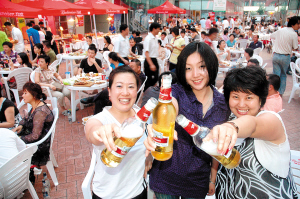 昨晚,由天津市金茂投资发展有限公司主办,《城市快报》媒体支持的“国际风情美食啤酒节”在天地烩美食街露天休闲广场开幕。本次天地烩国际风情美食啤酒节作为即将开幕的“中国天津第九届国际啤酒节”的和平区分会场,从7月18日至9月26日迎接八方来客。活动期间,天津市民将品尝到各餐厅精心准备的丰盛美食,还能参加露天休闲广场每晚推出的消夜狂欢活动。
