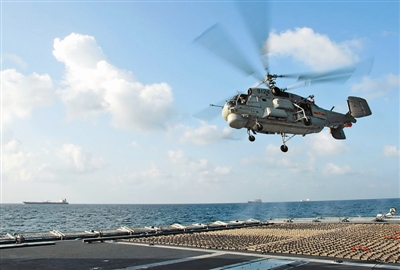 不间断的昼夜高度戒备、长时间的空中执勤巡逻……征战亚丁湾的一群“海天骄子”,直面高温高盐的海区环境、复杂多变的海空情况和艰苦孤寂的舰艇生活,出色完成了巡逻警戒、威慑驱离、勤务输送、垂直补给、航拍侦照等任务,创下了人民海军舰载直升机部队随舰执行任务持续时间最长、出动频率最高、机降难度最大等多项纪录,被中外商船和护航官兵亲切誉为“亚丁湾上空的中国鹰”。
