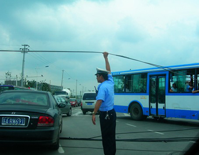 骆兴龙:举电缆让车辆通过 网友赞“撑起文明和谐” |
