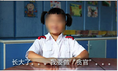 广州的中小学开学了,网上随即出现了一段视频,是记者在采访一所小学开学日时拍下的。关于长大了想做什么,每个孩子都说出自己的答案,有的说画家,有的说老师,有的说消防员。一个小女孩回答说想做官,记者问做什么样的官,女孩说:“做……贪官,因为贪官有很多东西。”童言无忌折射的是扭曲的现实教育。对她,我们无意也无需苛责什么,毕竟,她才只有6岁的年龄。孩子对她说过的话很快就会烟消云散,但留给我们的确实一连串深刻的反思……【点击观看全文】