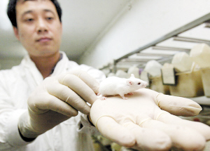在一楼实验室,每个房间内有数排由70个盒子组成的架子,每个盒子里有1只公鼠和2只母鼠。该部副主任刘凤勇说,这里每年有上万只小鼠为医学实验“献身”。因此,对它们的培育、繁殖、饲养要求非常严格,每只小鼠的遗传背景必须明确,谱系要清晰。另外,实验用的疾病模型鼠“家谱”和家族病史也要一清二楚。即使同一种动物,由于应用研究的不同,其具有的特点也各不相同。比如,用于糖尿病研究的小鼠须是糖尿病模型鼠,其祖先和后代须患同一类型的糖尿病。