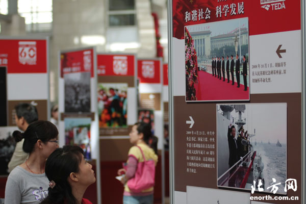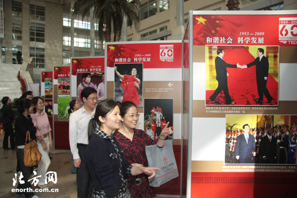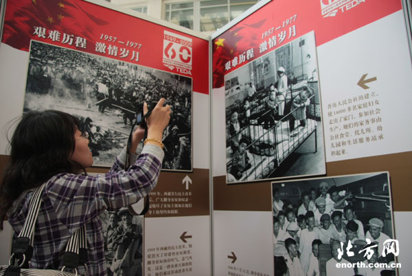 9月21日,《新中国60年经典瞬间》大型图片展在天津开发区投资服务中心一楼大厅开幕,此次展览是开发区为庆祝中华人民共和国60华诞举行的一次大型庆祝活动。