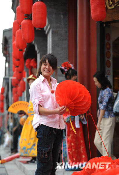 9月23日,北京前门大栅栏许多商铺张灯结彩,准备迎接本月28日的开市大庆。