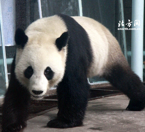26日下午,天津动物园人头攒动,游客们争先目睹“彤彤”的风采,别看经过了将近6个小时的舟车劳顿,但“彤彤”一点也不感到疲劳,在兽舍里不停地转来转去,视察新家,对周围的一切感到新奇。听说,“彤彤”一路上非常听话,一点儿也不怯生,运输的时候,看着工作人员在笼外忙前忙后,它却在笼内悠闲地吃竹子,胃口特别好。