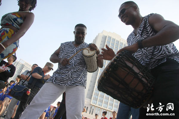 国外10支异域风情表演团队和国内8支群众艺术团队为游客带来了精彩的巡街表演,包括巴西桑巴舞、法国红磨坊舞蹈和康康舞蹈、俄罗斯模特时装秀和风情舞、菲律宾风情舞、西班牙风情舞、非洲土著舞蹈,以及花车巡街、国标舞、华尔兹、拉丁舞、恰恰舞、牛仔舞、动漫秀、时装秀、假面舞会等,广大市民群众也加入到欢乐的表演团队中,呈现了浓厚欢庆氛围。开街开业活动还邀请了社会各界人士、规划建设交通系统劳模代表、津湾广场社会监督员等约500人参加。