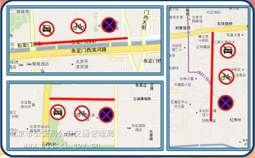 十一、10月1日2时30分至8时,宣武区永定门西街,海淀区玉渊潭南路(五棵松场馆路段),丰台区宋庄路,除持有庆祝大会专用证件的车辆和公共汽车外,禁止其它车辆停放和通行,公共汽车甩站通过。