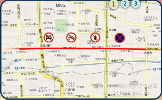 二十三、10月1日12时30分至庆祝大会结束,采取以下交通管制措施:(一)由北京站街北口经建国门内、外大街、建国路至大望桥双向主路及北侧辅路,禁止各种车辆和行人通行。