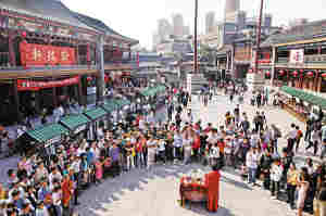 今年“十一”黄金周,本市40项商贸旅游业重点项目中的17个特色商业街区已提前建成开放,为广大市民及游客提供更多购物休闲娱乐好去处的同时,也有力拉动了人流、物流、资金流。记者在现场看到,各大特色商业街游人如织,节日购销火爆。据市商务委统计数据显示,假期六天来,各大特色商业街已接待观光客近500万人次,销售收入实现近6000万元,同比增幅超20%。