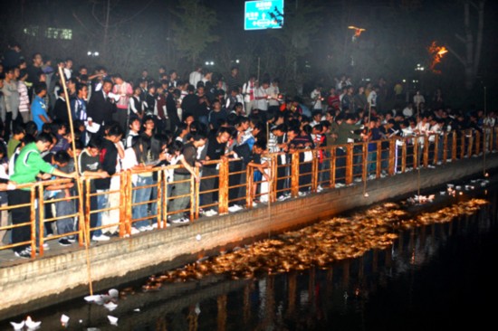 据上海交通大学网站报道:闻悉敬爱的钱学森学长不幸逝世,上海交大学子陷入深深的悲痛和哀伤之中。10月31日晚上,两千多名同学自发聚集在闵行校区学森路上,举行了一场庄重而富含真情的追思会。他们进行了发言交流,用蜡烛排成“学长走好”字样,在湖里放走许愿船,依依不舍地送别钱学森学长。
