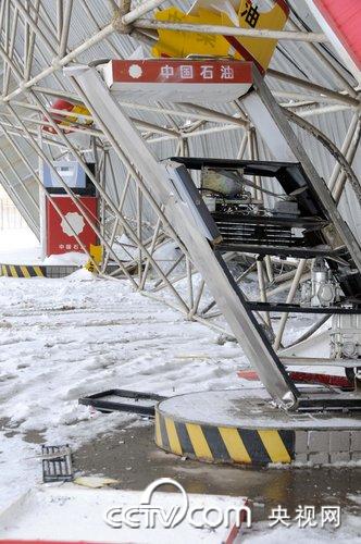2009年11月12日,在河北邢台县南石门镇西小郭村附近,一座大型加油站被暴雪压塌。从11月10日晚开始的暴雪,是邢台55年来降雪之最,市区积雪量36厘米,气象台连续发布暴雪和道路结冰红色预警信号。这次暴雪时段集中、强度大,造成比较严重的积雪,部分地区的交通、运输、电力、农业等造成较大影响。
