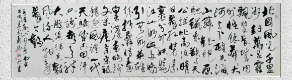 茫茫人海,人与人之间是讲缘分的,有的人相交数年不见得说半句真心话;有的人,就像李颖逊和著名书法家范润华一样,一见如故,李颖逊拜范润华门下主攻草书。范润华先生是中国著名书法家,其狂草书法在书画界堪称一流,而且能在全国各地举办的狂草书法艺术展更是凤毛麟角。其笔力苍劲浑厚,好像千年之间沙漠吞噬荒野瞬间那种惊心动魄。李颖逊在范润华亲传、言教指导下,以真情消化文字,勤学苦练,善于思考,在书艺上不断给自己提出新目标,不断探索实验,不断超越自己,不断攀登书艺的高峰,在草书上形成了自己独特的艺术风格。