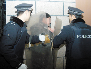 河西警方防控指挥车,接到分局指挥中心的指令。指挥长王劲通过车载电台,调集正在事发现场附近巡逻的友谊路派出所民警火速赶往现场。王劲命令车上巡警要佩戴头盔、防护盾牌、防割手套以及防弹背心,随后他率指挥车急速赶往事发现场。