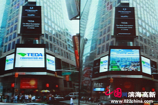 美国纽约时代广场也同步发布了天津开发区新版标识