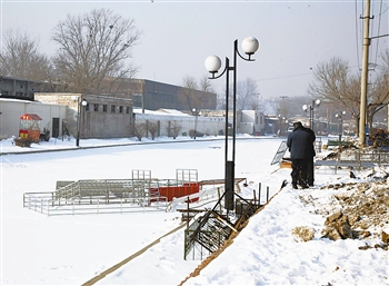 记者昨天10时许在红旗路的芥园桥上看到,在桥西侧的津河河道冰面上横七竖八地堆放了近20个窗用铁护栏,而在津河北岸的绿地里也堆了好几处铁护栏。一名正在清雪的环卫工人告诉记者:“这些护栏都是青年路上生产销售铁护栏的几家商户放的,最近城管部门对铁护栏里空外卖行为查得很严,因此这些商家就把原来放在路上的铁护栏‘藏’到津河河道的冰面和河岸的绿地里,这样能逃过城管执法的巡查,还可以用此来招揽生意。”
