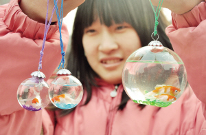 近日,市场上一种名为“招财鱼”的装饰品很受年轻人青睐。金鱼被密封在一个提前充入氧气与营养液的玻璃器皿内,大约可存活半年。动物保护主义者认为,金鱼在这种密封的玻璃器皿内只有很小的生存空间,在一定时间后,由于营养液与氧气的耗尽而死亡。这种装饰品容易对青少年尤其是儿童产生不良影响。