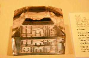 费城艺术博物馆收藏的疑似圆明园文物———水晶制品印章,分别刻有满汉对照的“太上皇帝之宝”,“十全老人之宝”印文,工作组推测,其属于圆明园的可能性较大。 |