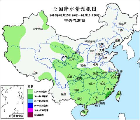 15日20时至16日20时,新疆东北部和南疆西部、西藏西部和东南部、川西高原北部、青海东部和北部、甘肃中东部、宁夏南部、陕西南部、江汉中南部、江淮西部、江南大部等地有小到中雪(雨)或雨夹雪,其中,西藏西南部、川西高原北部等地局部地区有大雪;华南大部、四川盆地大部、重庆、贵州大部、台湾中北部等地有小到中雨(雨夹雪)或阵雨;贵州中部局地有冻雨。黄淮东部、江淮东部、江南东部有4~5级偏北风,新疆北部、甘肃大部、内蒙古大部等地有4~6级偏北风,新疆山口地区风力可达6~8级。东海大部海域、台湾海峡、台湾以东洋面将有7~8级、阵风9级的东北风。另外,黄海大部海域将有4~6级偏北风;台湾以南海域、南海北部海域、北部湾将有6~7级东北风。