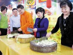 “预备,开始,把新的一年咱们所有郁闷烦恼都‘剁’走……”昨天下午,位于南开区长江道附近的一家饭店内,正有不少客人在用刀快速地剁着菜,桌子后面一张用毛笔写的“春节初五,‘剁’走郁闷”几个大字非常显眼。刚刚剁了一盆子菜的几名年轻人告诉记者,他们是80后,“以前小的时候,大人们就在菜板上剁来剁去,说是抛开‘小人’,事事顺心,来年好吉利,没想到饭店还有这服务,刚才剁的那几下还真痛快。”
