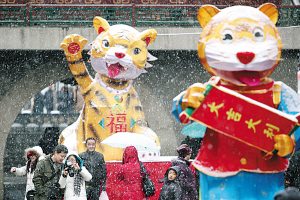 古文化街“金虎迎春”元宵节花灯,将各式各样的彩灯与传统的民间花会相结合,营造出浓浓的元宵节氛围。为了打造元宵节景观亮点,烘托节日气氛,古文化街在街区内部主干道和老字号名品街区域划分出“两纵”、“两横”观赏区,分别设置不同的造型灯组,构成元宵节的观赏内容。彩灯有“虎形”彩灯展、“冰雪世界”彩灯展,彩灯主题包括“福临门虎”、“迎新虎”、“辞岁迎新虎”、“财源广进虎”、“三阳开泰虎”以及“十二生肖”、“鲤鱼跃龙门”、“冰滑梯、“冰迷宫”等。在欣赏美景的同时,主办者还设置了数百个趣味灯谜,内容包括百姓生活、民俗习惯、旅游景点、日常用品等供游人竞猜,使现场气氛更加热闹。(本报记者张鸣岐)