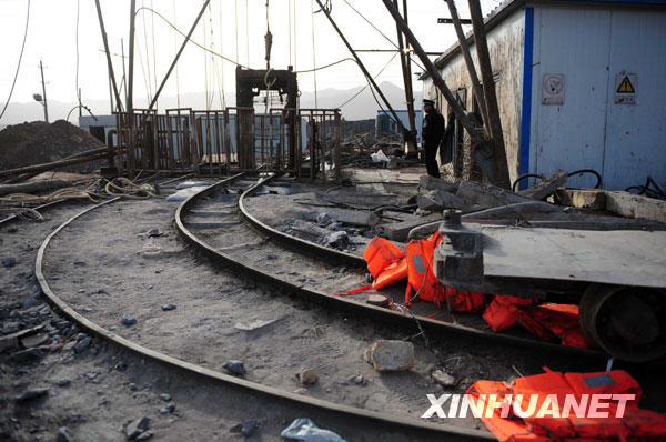 3月1日拍摄的发生透水事故的煤矿竖井。当日7时29分,由中煤五公司、陕西煤建公司和郑州煤建公司承建的神华集团骆驼山基本建设煤矿,在施工中井下16号煤层掘进工作面发生透水事故。目前查明,事故发生时井下共有77人,经现场组织撤人和急救已有46人安全升井,还有31人被困井下。新华社记者任军川摄