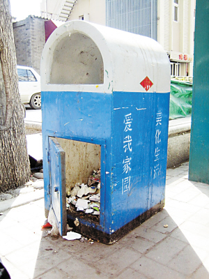 根据目前了解的情况,河北区界内的主干道路上需要更换和维修的“问题”果皮箱共有1000个左右。这些果皮箱的整体更换和维修需要一定时间,他们正在就这一情况与河北区市容委接洽。