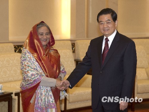 胡锦涛积极评价中孟关系。他表示,中孟两国同为亚洲发展中国家,都面临促进经济社会发展、提高人民生活水平的任务,都致力于区域合作和亚洲的振兴与发展。不断巩固和发展中孟友好合作,是中国政府坚定不移的方针。