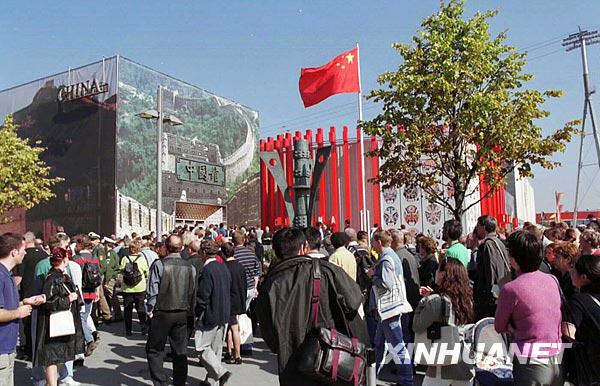2000年9月23日,德国汉诺威世界博览会举办中国馆日活动,来自中国的文艺团体表演的功夫、杂技、民乐等中国传统文艺节目赢得观众的阵阵掌声。中国馆自6月份开馆以来参观总人数已超过250万,约占世博会总参观人数的四分之一,是世博会最受欢迎的展馆之一。图为观众踊跃参观中国馆。新华社记者郭勇摄(资料照片)