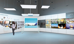 高科技厅主要通过图片反映天津八大支柱产业,以“阵列小球”的不同组合变化方式展示飞机、汽车、火箭、火车等天津高端制造业发展,充分表现天津建立高端产业高地和自主创新高地的成果。据悉,“阵列小球”是采用电脑控制上千个悬挂的小钢球的方式,通过钢球的变化展现出不同项目的造型。另外,人体健康互动装置也将是这里的一大亮点。